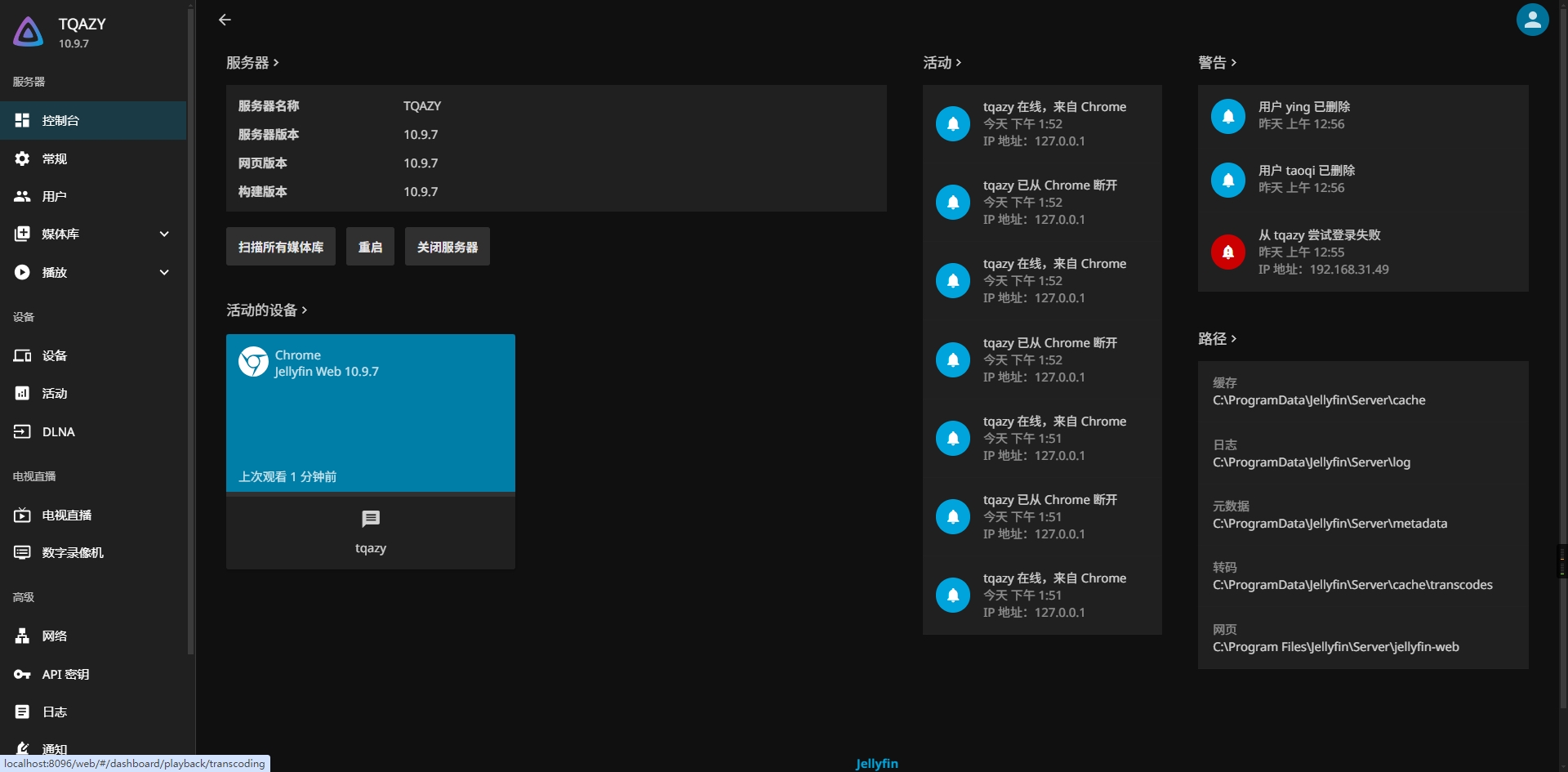 我在笔记本上下载了Jellyfin的Windons的Server端。